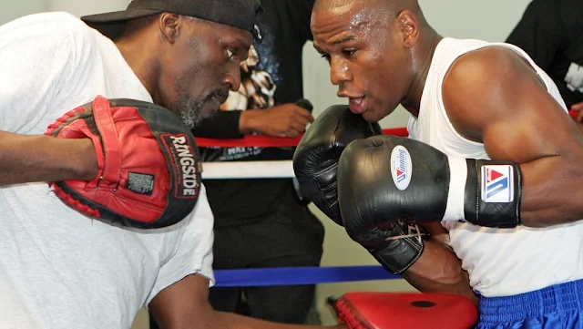 Boxer Floyd Mayweather Jr. (derecha) trabaja con su tío y entrenador